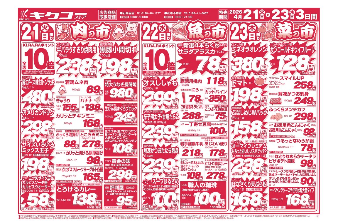 ※掲載しておりますチラシ内容についてのお問い合わせは、チラシ掲載店へお願い致します。